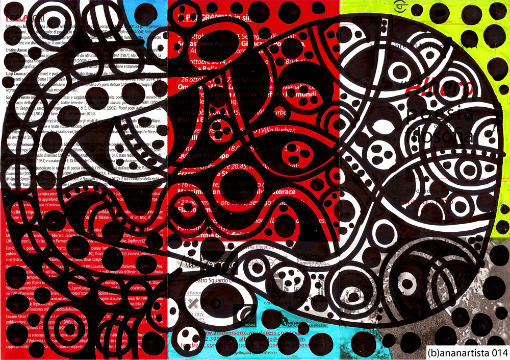 “Sangue e detriti per Rainer Maria Rilke” – tecnica mista su volantino de “l’albero della poesia e della filosofia” – (b)ananartista 014 – http://www.bananartista.com