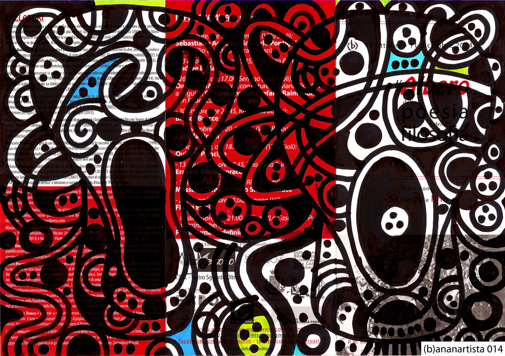 “Sangue e detriti per Rainer Maria Rilke” – tecnica mista su volantino de “l’albero della poesia e della filosofia” – (b)ananartista 014