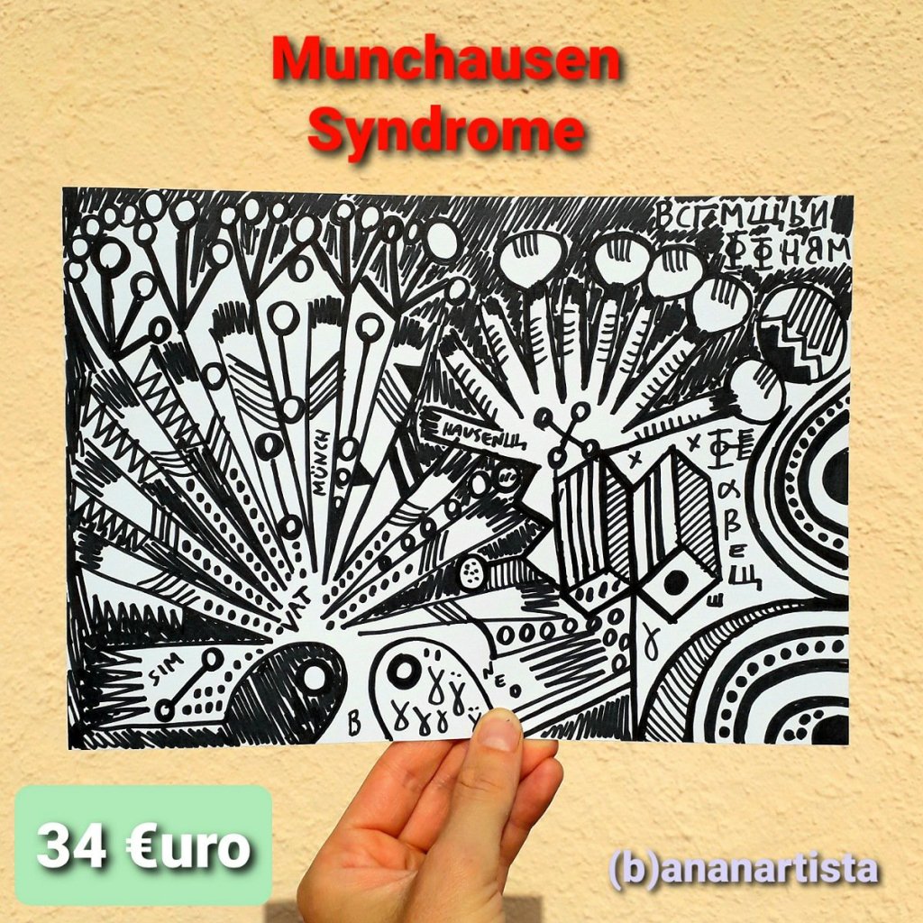 Title: “Munchausen Syndrome” – permanent marker on A4 paper – Price: 34 €uros