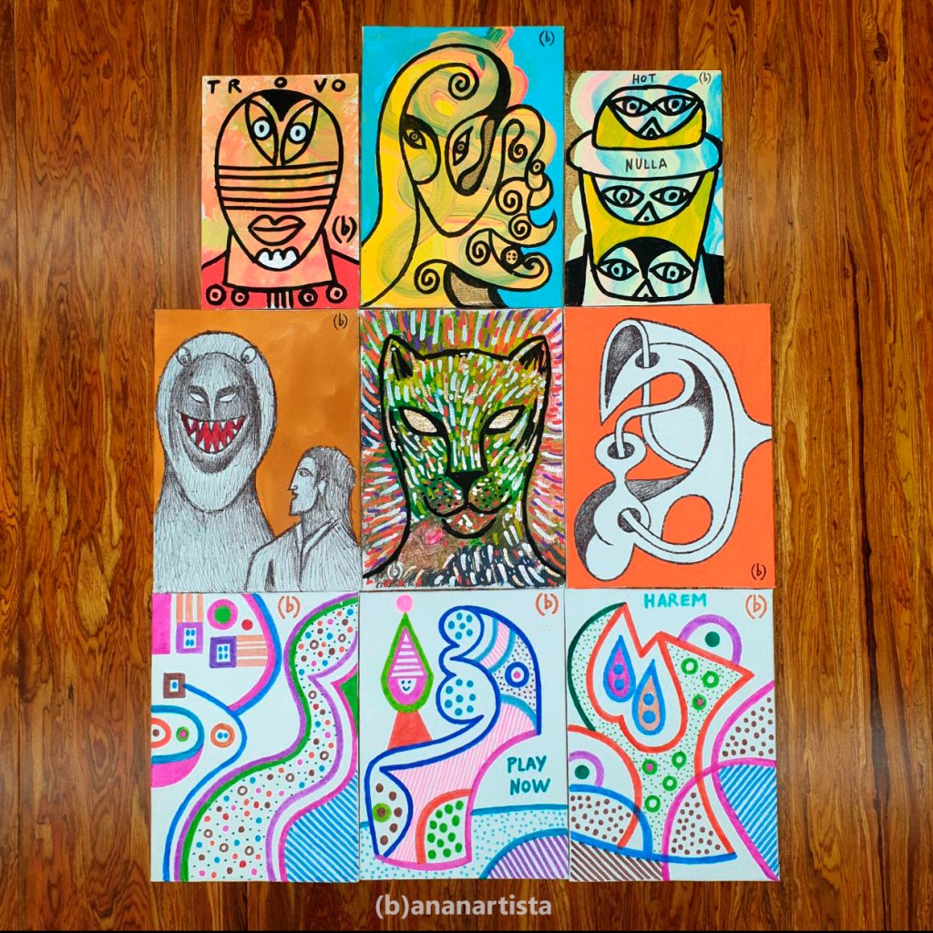 Tecniche miste su cartone telato 13 x 18 cm firmate e numerate per i collezionisti di tutto il mondo.