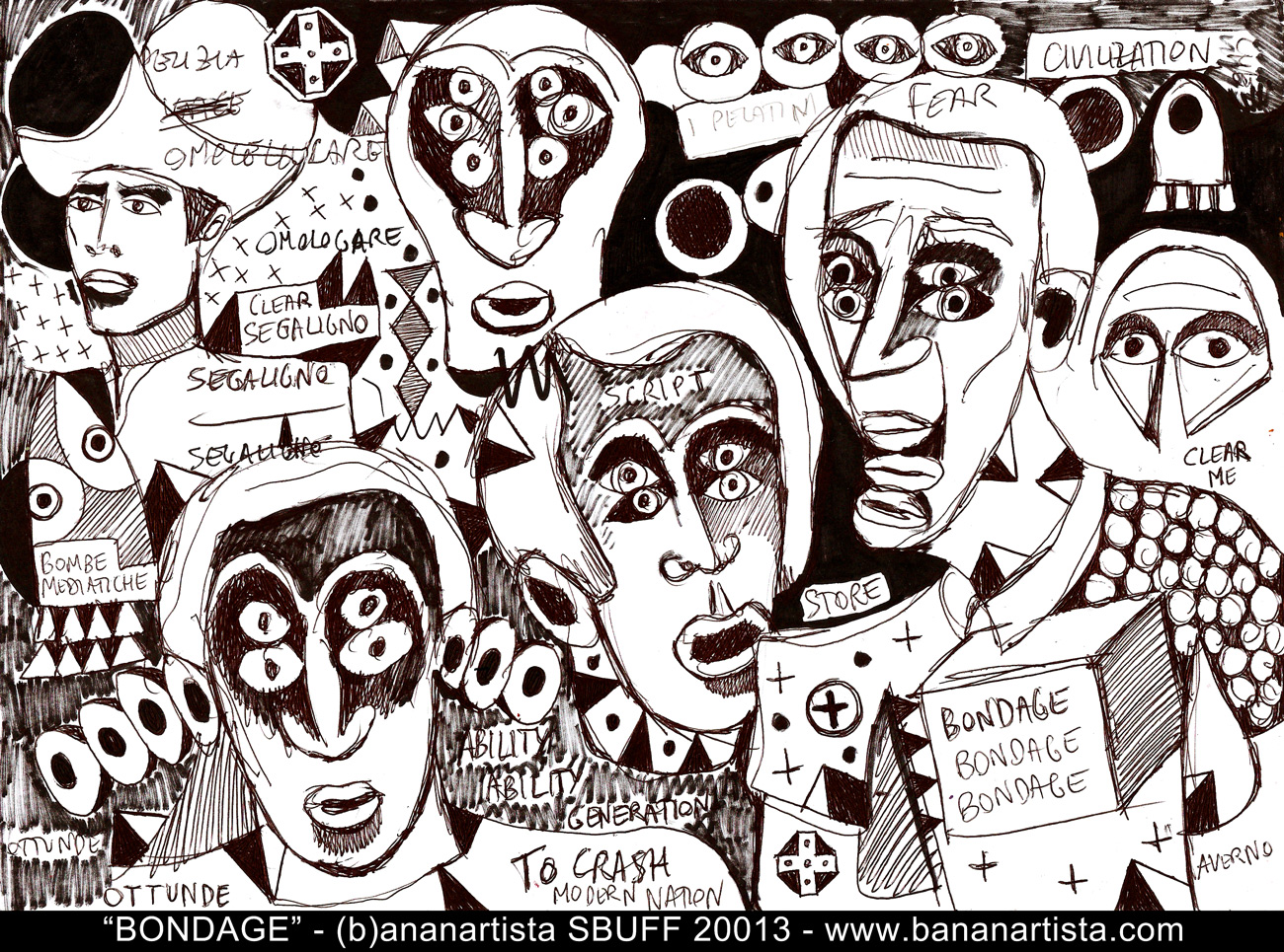 (b)ananartista_bondage “BONDAGE” – (b)ananartista orgasmo SBUFF – mixed media on paper – http://www.bananartista.com