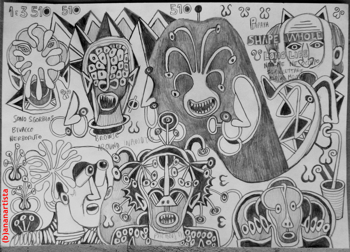 "7 FACES" - pen on paper - (b)ananartista 20013